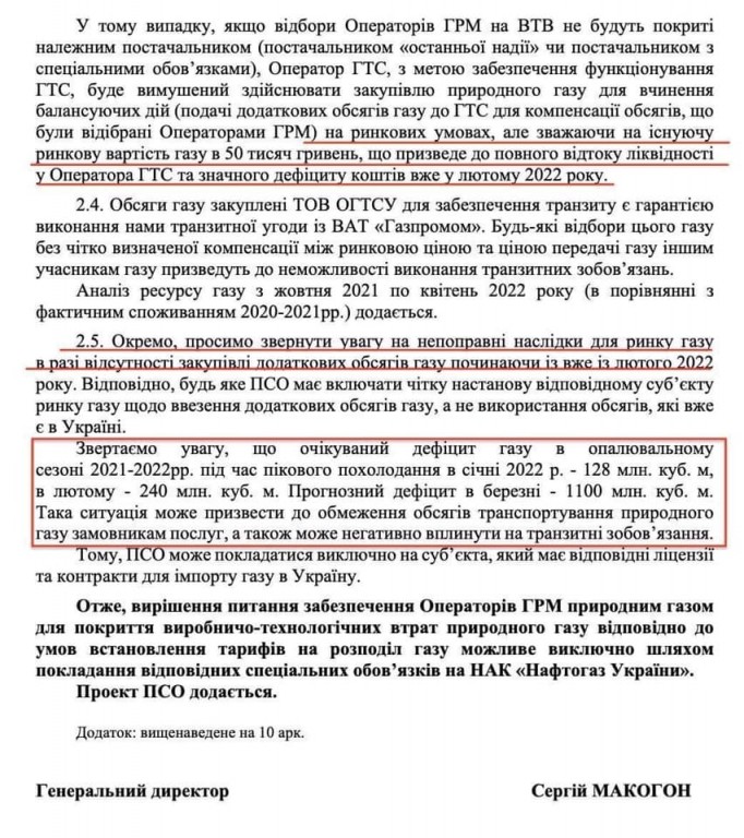 «Нарешті Оператор ГТС набрався мужності та сповістив Уряд та президента стосовно величезних проблем на газовому «ринку». По-перше, він підтвердив очевидний дисбаланс газу в 1.5 млрд кубів на січень-лютий-березень і попередив про можливі наслідки. По-друге, він попередив про те, що його штучно заганяють в борги механізмом ПСО, що неминуче стане підставою для звинувачень в транзитній нездатності з боку «Газпрому»», – написав Кучеренко.